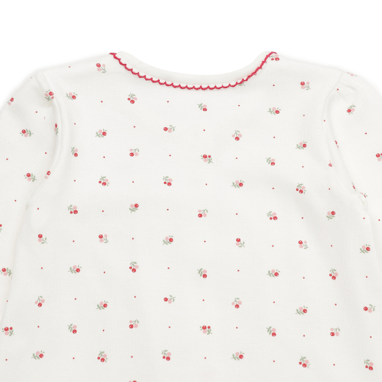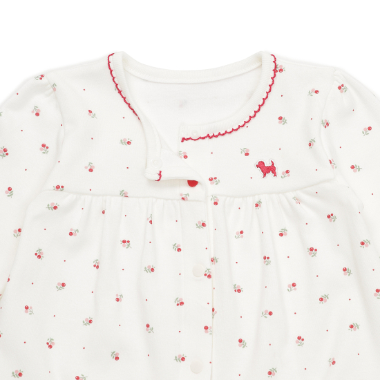 피콧 포인트로 사랑스러움을 더했으며 강아지 자수로 포인트를 주었습니다.