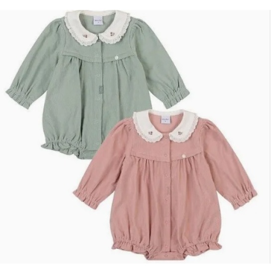 골지 우주복으로 카라 프릴이 귀여운 여아 우주복입니다