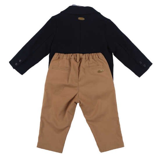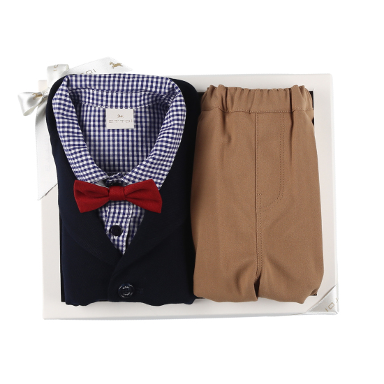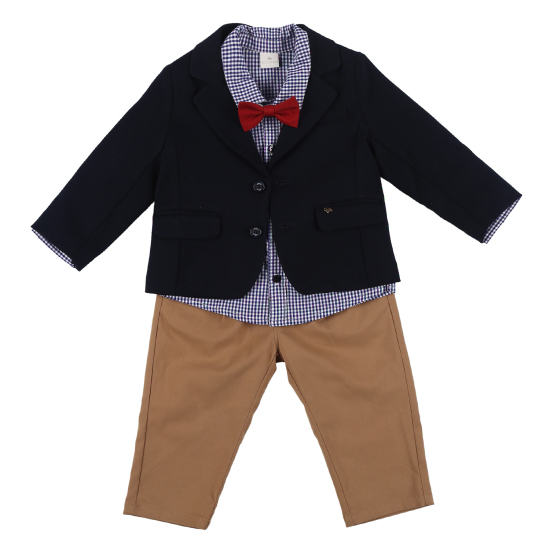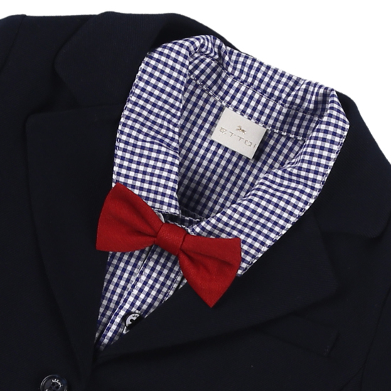 부드럽고 멋스러운 소재감과 네이비와 베이지의 컬러 매치로 고급스러운 정장 3PCS 체크 셔츠 포인트로 캐주얼한 정장 느낌입니다.레드 컬러 리본 타이는 라운드형으로 목둘레 조절이 가능하며 별도 활용이 가능 하며고급스러운 베이지 컬러의 바지는 허리 안쪽에 밴드로 조절이 가능 합니다.스페셜룩으로 특별한날 기념일에 착용해도 좋은 남아 정장 3PCS 입니다. 배송메세지란에 메모를 남기시면 선물포장 됩니다.