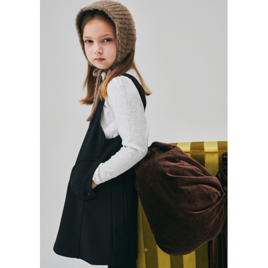 윈터 파스텔 스타일에 어울리는 민트 컬러의 트위드 원피스입니다. 소매와 넥부분에 골지 소재의 파스테리한 민트 컬러의 다이마루 소재를 배색하여 부드럽고 포근한 느낌을 더해주었습니다. 고급스러운 트위드 소재와 에이라인으로 떨어지는 라인이 여성스러운 분위기를 더해줍니다. 동일 소재의 트위드 헤어밴드와 함께 매치하여 사랑스러운 여아 겨울 스타일링을 제안할 수 있습니다.