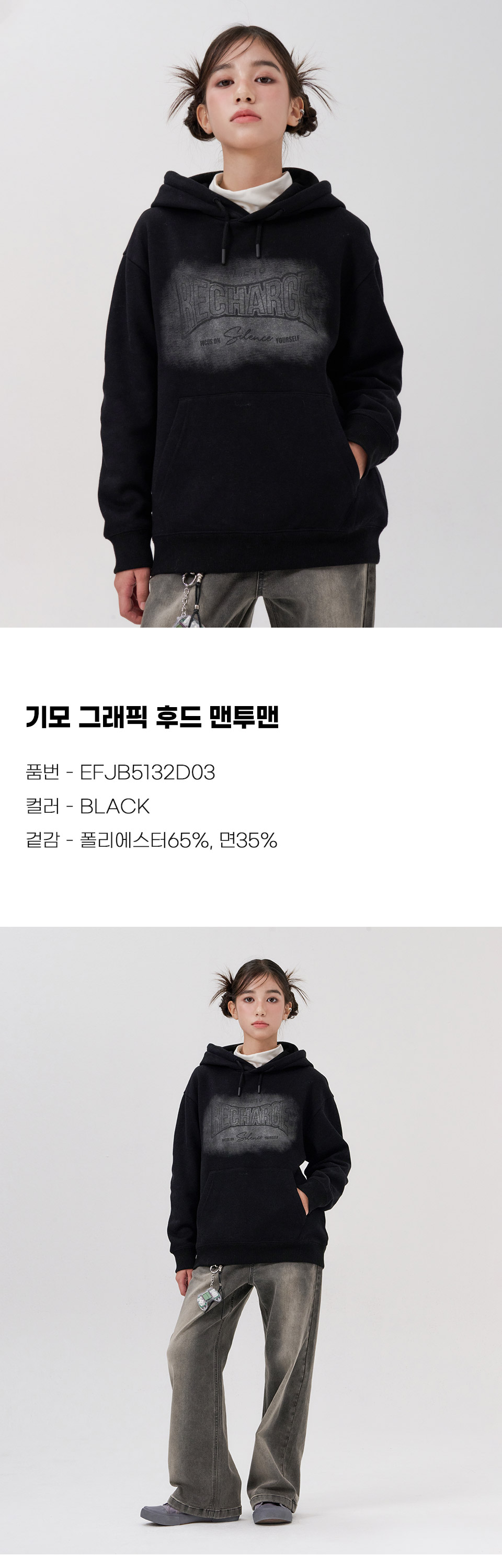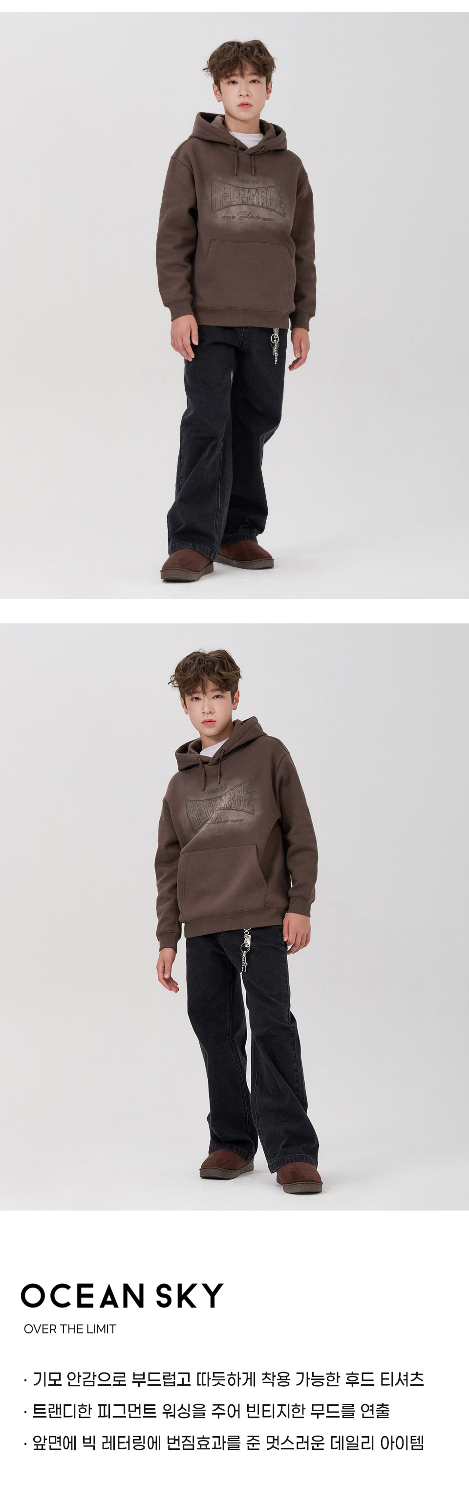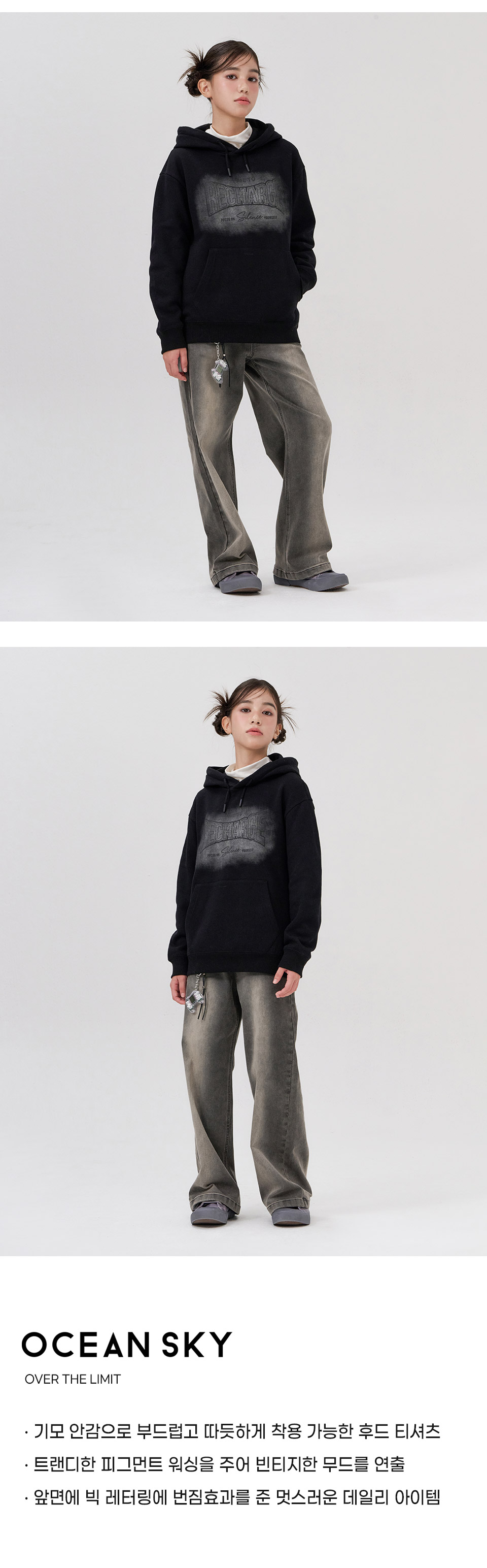 (현대Hmall)오션스카이 2color공용 빈티지 기모 후드티셔츠