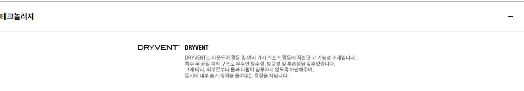 DRYVENT 소재를 사용하여 방수, 투습, 발수 기능이 되는 고기능성 스타일입니다.