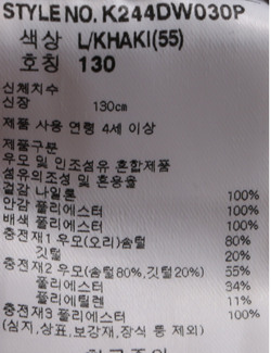 - 보온력이 집중되어야하는 등판에천연 다운 패브릭인 씬다운을
