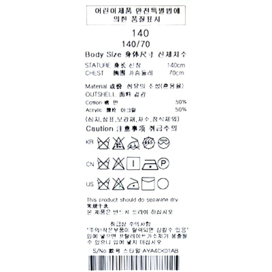 • 본 상품은 어린이제품 안전특별법 공급자 적합성 대상품목으로 아래의 어린이제품 안전특별법 공급자 적합성 을(를) 필하였습니다.