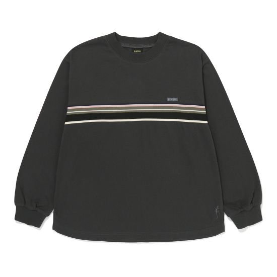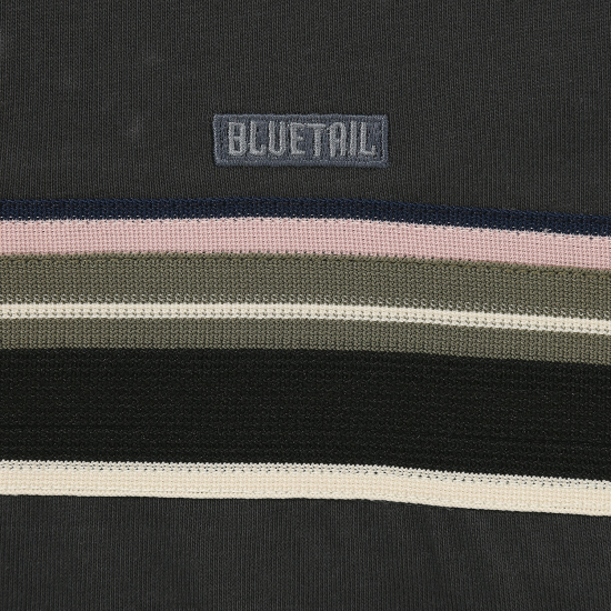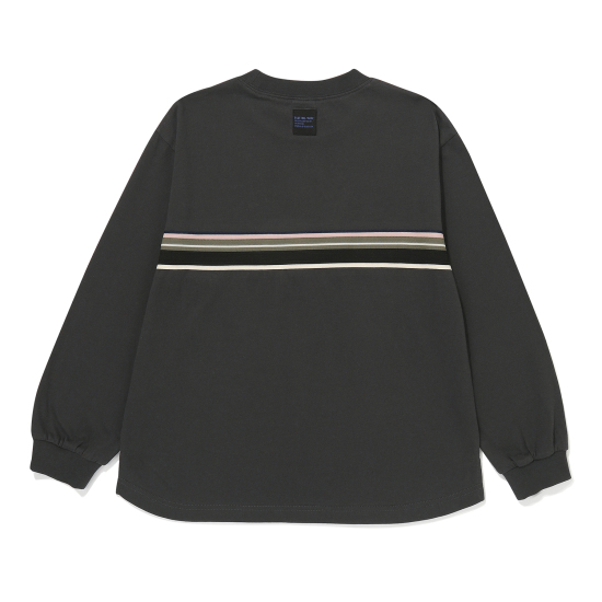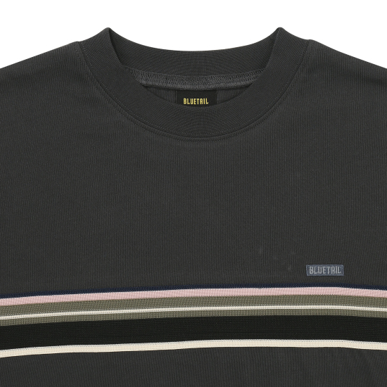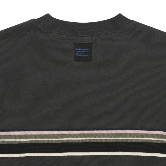 시크한 차콜그레이 컬러 티셔츠입니다. 앞뒤 중앙 부분에 테이프를 덧대어 트랙 느낌을 스포티하면서 힙한 스트릿 감성으로 제안하였습니다. 옆라인엔 트임이 있어 스타일링에 용이하며 뒷기장이 아주 살짝 길어 입었을 때 더욱 스타일리시하게 연출할 수 있습니다. 레터링 자수와 라벨로 컬러 포인트를 주었습니다.