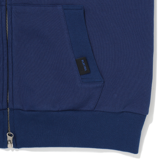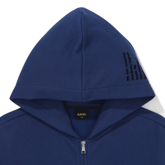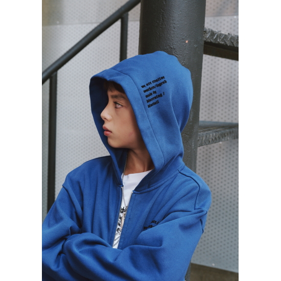딥한 코발트블루 컬러로 제안한 후드 집업 점퍼입니다. 스트릿스러운 후로킹 레터링나염과 라벨로 컬러 포인트를 주었습니다. 한 치수 큰 사이즈를 선택해 오버사이즈 핏으로 연출하여 스트릿앤 힙한 감성으로 연출할 수 있습니다.