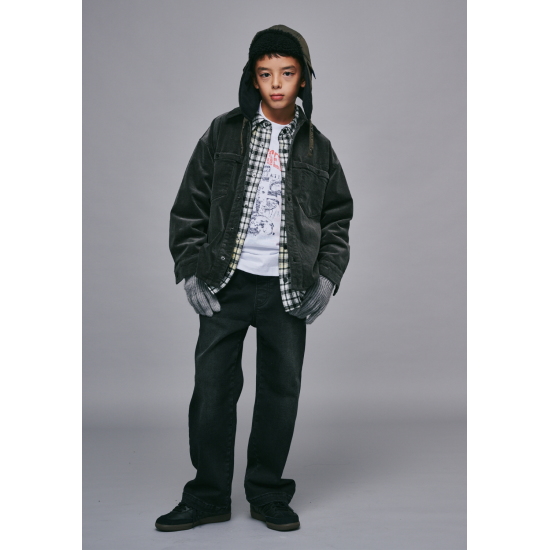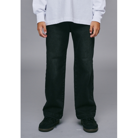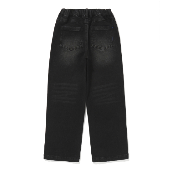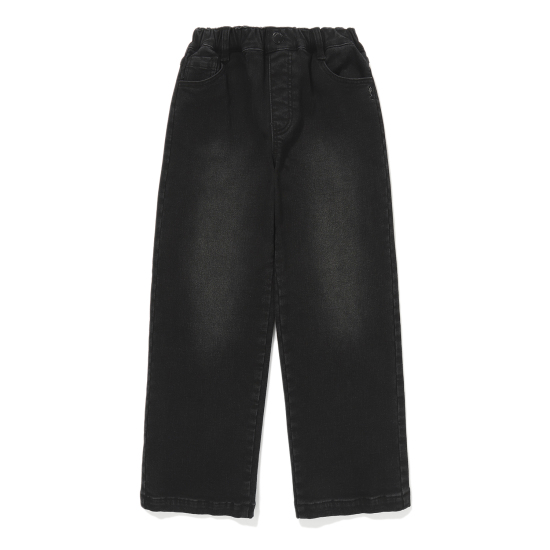 블랙에 가까운 다크한 차콜 그레이 컬러 세미 와이드 스트레이트핏 데님 팬츠입니다. 부드럽고 신축성 좋은 원단 특성을 살려 전체 통고무줄로 더욱 편안하게 제안하였습니다. 도마뱀 자수와 라벨로 컬러 포인트를 주었습니다.