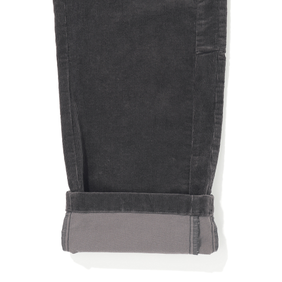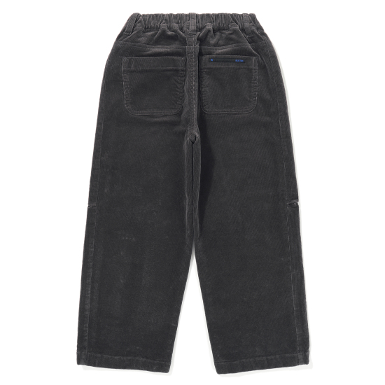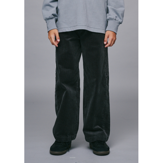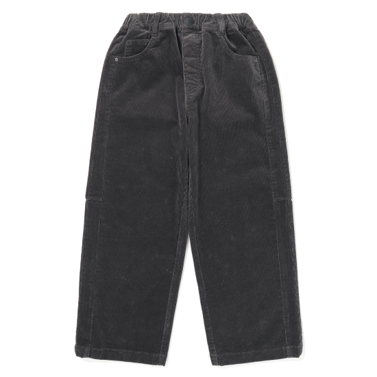 변형 커브드 라인 와이드 핏 차콜 그레이 코듀로이 팬츠입니다. 전체 통고무줄로 편안하게 착용할 수 있습니다. 사이드 절개와 무릎 입체를 돋보이게하는 주름을 더했습니다. 착용 시 떨어지는 라인이 여유 있는 힙한 무드를 연출할 수 있는 상품입니다.