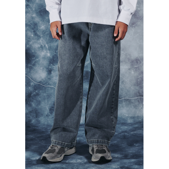기모 원단으로 제안한 워커 스타일의 세미 와이드 배기핏 미드 블루 컬러의 데님 팬츠입니다. 전체 통고무줄로 편안하게 제안하였고 무릎 앞부분에 다트를 주어 착용 시 입체적인 핏이 멋스러운 상품입니다. 트렌디하면서 빈티지한 스톤 워싱이 돋보이는 아이템입니다. 도마뱀 자수와 라벨로 컬러 포인트를 주었습니다.