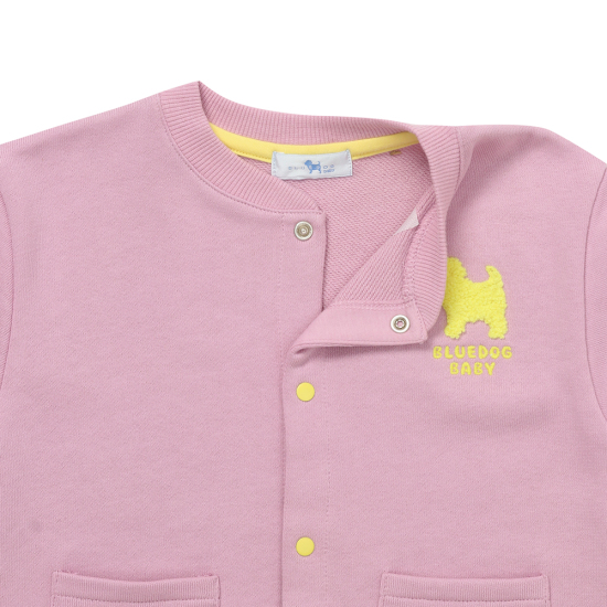 베이직한 블루독베이비 로고가 포인트인 우주복 세트 아이템입니다.면 소재를 사용한 우주복으로 톤다운 된 퍼플 컬러 위에 에쉬