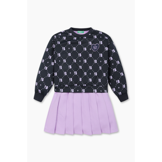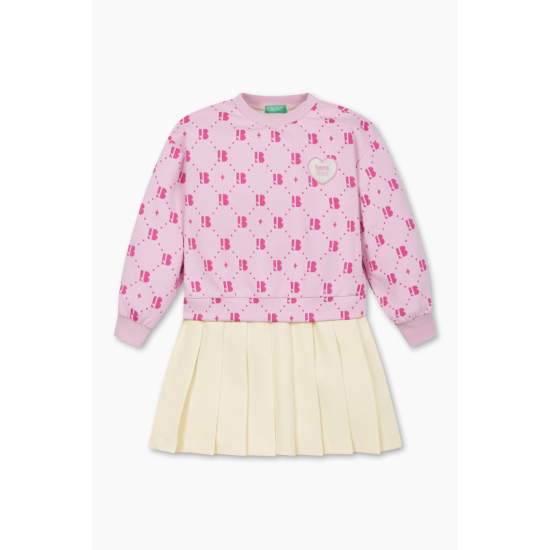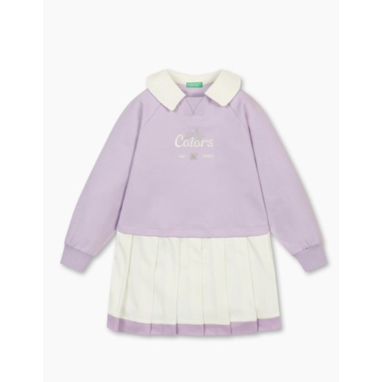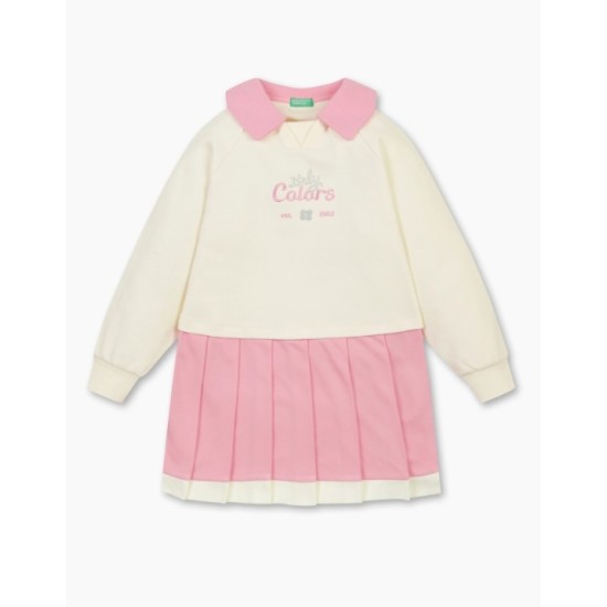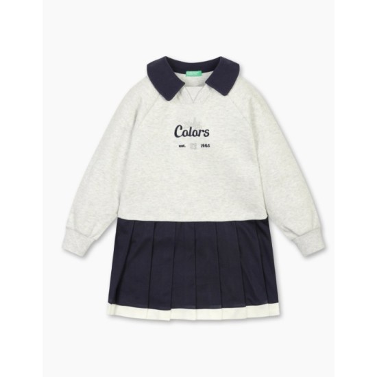 베네통 키즈만의 로고 패턴으로 포인트를 준 플리츠 원피스.