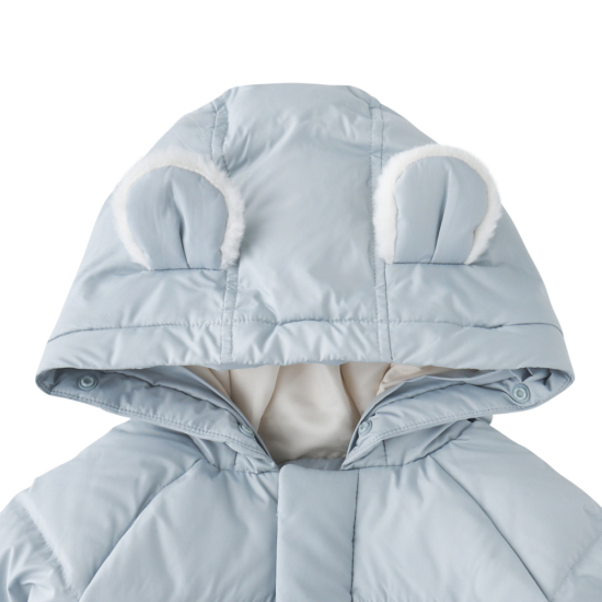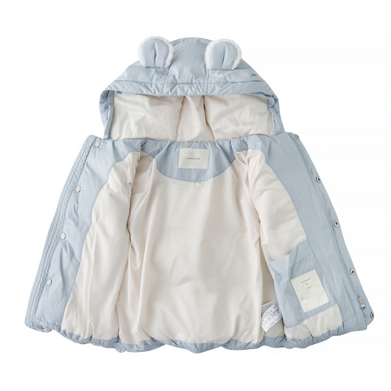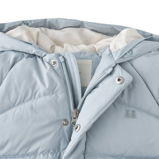 마일드한 블루 컬러의 베베 덕다운 점퍼입니다.가볍지만 보온성이 뛰어나며 발열 안감으로 보온성을 높여준 실용적인 아이템입니다. 포켓과 후드에 귀 포인트를 주 어 귀여운 느낌을 더해주었습니다. 퍼 트리밍은 탈부착이 가능하여 두 가지 느낌으 로 연출 가능합니다.