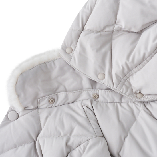 소프트한 크림베이지 컬러의 덕다운 점퍼입니다. 탈부착 가능한 후드로 두가지 스타일이 연출 가능하며 퍼 카라를 더해 따뜻하고 포근한 느낌을 더해주었습니다. 부드러운 벨보아 안감으로 보온성을 높여준 클래식한 실용적인 아이템입니다.