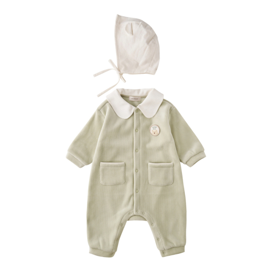소프트한 민트컬러의 베베골벨로아SET우주복입니다. 부드럽고 포근한 골벨로아 소재를 사용하였으며 보온성이 좋은 아이템으로 코듀로이 소재의 카라로 포인트를 주었으며 보넷과 세트로 구성하여 귀여움을 더했습니다.