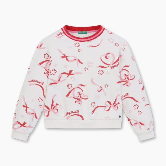사랑스러운 리본 나염 프린트가 돋보이는 여아 맨투맨.