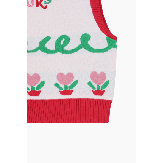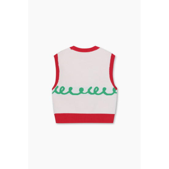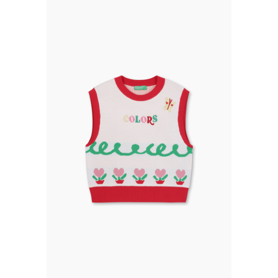 비비드한 컬러 자가드로 포인트를 준 니트 베스트.