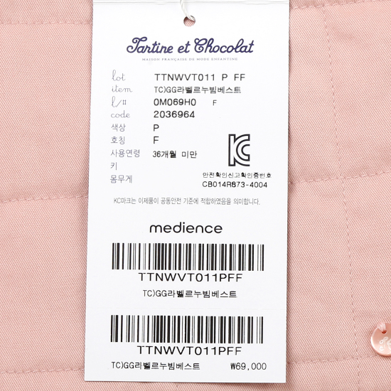 (롯데백화점)라벨르누빔베스트TTNWVT011P(유아누빔조끼)