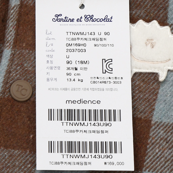 (롯데백화점)쿠카체크패딩점퍼 TTNWMJ143U
