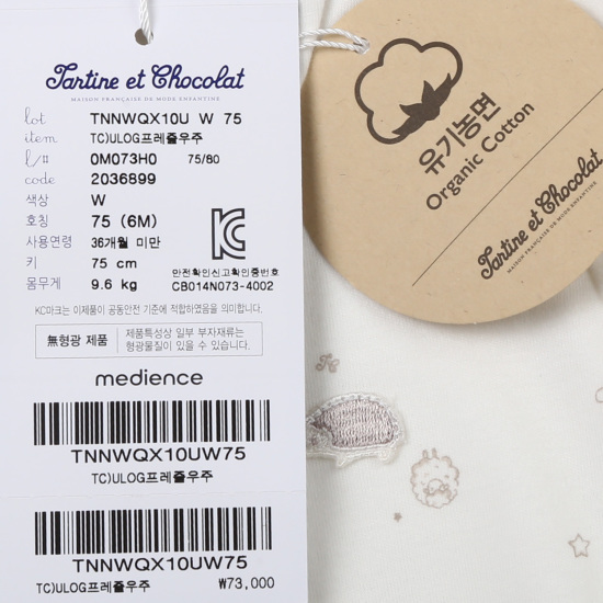 본제품에 사용된 유기농면은 화학약_품에의한 피부자극이 작기때문에 아기피부에 가장 적합한소재로 만든 상품입니다