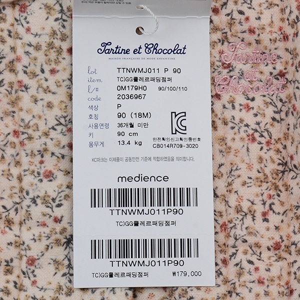 제품소재 : 겉감 면 66% 레이온 34% 안감 면 100% 충전재 폴리에스터 100%