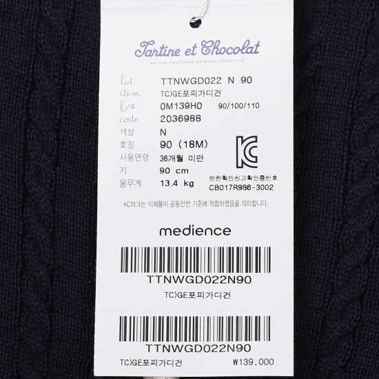 (롯데백화점)포피가디건(유아니트가디건)TTNWGD022N