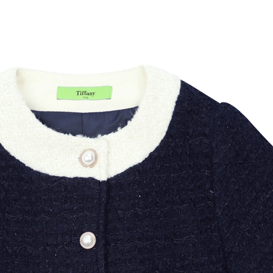 상품설명-네이비 울 소재 자켓으로 은은한 펄감이 고급스러운 스타일입니다. 아이보리 배색을 크게 주어 트렌디함을 살린 스타일입니다. SET 스커트와 코디하여 특별한 날 연출하기 좋은 스타일입니다.