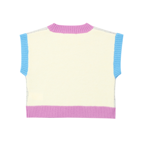 상세설명-토끼 모티브를 자카드로 작업한 니트 VEST입니다. 토끼 모티브와 립단의 배색으로 컬러감을 올린 스타일입니다