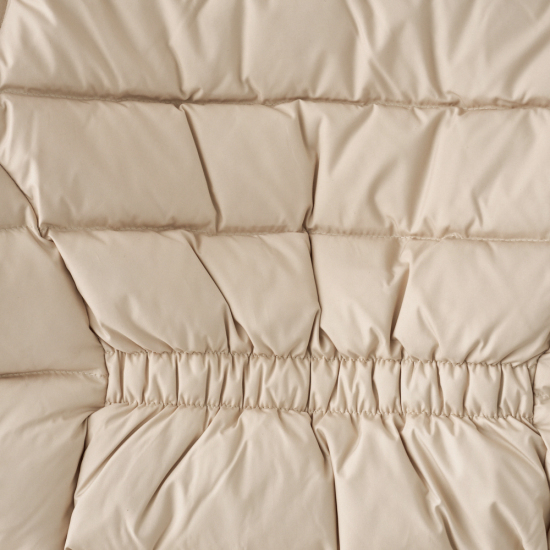 퓨어한 베이지 컬러의 롱다운 점퍼로 앞판의 프린세스 라인 절개가 러블리한 핏을 연출해 줍니다. 포켓에는 퍼 배색과 방울 퍼 장식을 더해 귀여운 포인트를 주었으며 부드러운 밸보아 안감으로 보온성을 높인 아이템입니다.