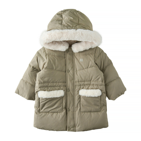 소프트한 카키 컬러의 롱 덕다운 점퍼입니다. 안쪽에 허리 조절이 가능한 스트링이 있어 핏을 다양하게 변화 할 수 있으며 롱한 기장으로 보온성까지 돋보이는 아이템입니다. 퍼 트리밍은 탈부착이 가능하여 두 가지 느낌으로 연출 가능합니다.