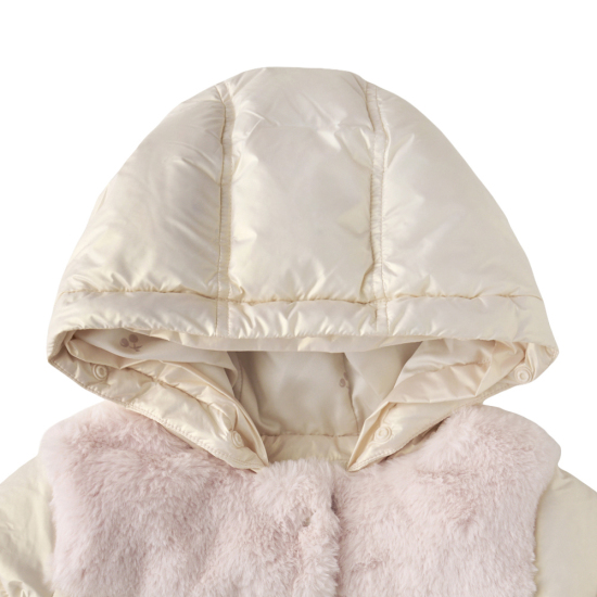 은은한 펄감의 샤이닝 핑크 다운 점퍼입니다. 주머니의 리본 디테일로 포인트를 주었으며 후드와 퍼트리밍 탈부착이 가능하며 다양한 스타일을 연출할 수 있습니다. 부드러운 벨보아 안감으로 보온성을 높인 아이템입니다.