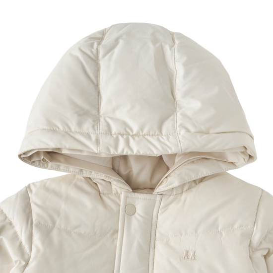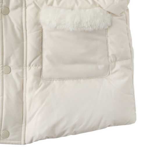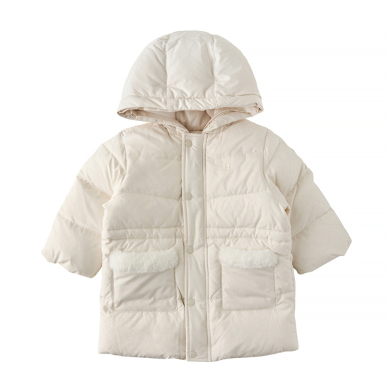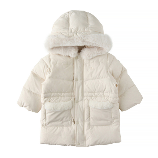 퓨어한 크림 컬러의 롱 덕다운 점퍼입니다. 안쪽에 허리 조절이 가능한 스트링이 있어 핏을 다양하게 변화 할 수 있으며 롱한 기장으로 보온성까지 돋보이는 아이템입니다. 퍼 트리밍은 탈부착이 가능하여 두 가지 느낌으로 연출 가능합니다.
