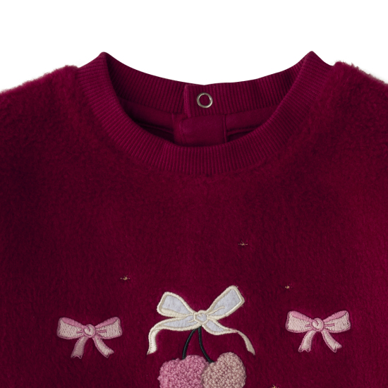 클래식한 레드 계열의 블링리본체리상하복입니다. 부드럽고 포근한 퍼쭈리 소재에 크리스마스 무드의 리본체리 자수로 포인트를 더한 상의와 스트라이프 하의를 세트로 구성한 아이템입니다.