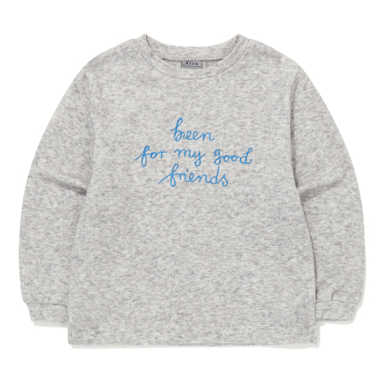 따뜻하면서도 내추럴한 컬러감이 돋보이는 멜란지 컬러의 라운드 티셔츠입니다. 앞판의 선명한 블루 컬러의 자수 포인트가 빈의 좋은 친구라는 의미로 고급스러운 포인트를 더해주었습니다. 아이보리 퀼팅 점퍼와 베이지 컬러의 코듀로이 팬츠와 함께 매치하여 세련된 컬러감의 빈의 타운 캐주얼 스타일링을 연출할 수 있습니다.