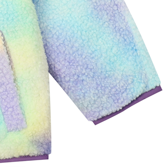 상품설명-시어링 소재로 특유의 곱슬거리는 촉감으로 겨울에 편안하게 입을 수 있는 집업 점퍼입니다. 앞판 지퍼와 소매 그리고 밑단에 보라색 랍빠로 컬러 포인트를 주어 귀여움을 더했습니다. 도톰한 패딩솜을 이용하여 보온성을 높여서 초겨울까지도 입을 수 있습니다.