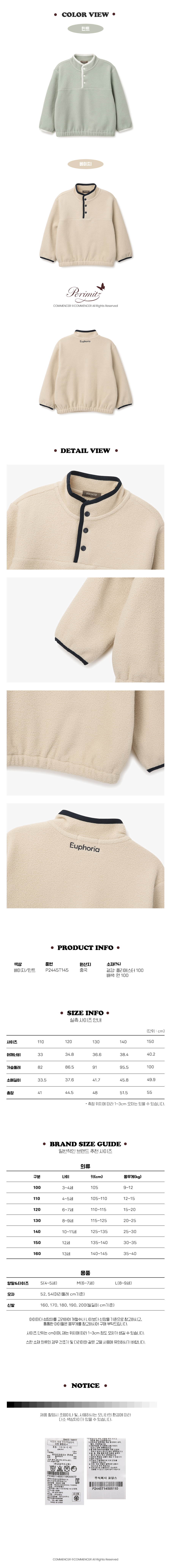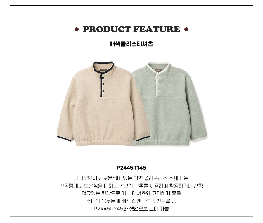 보리보리/페리미츠 배색플리스티셔츠(P2445T145)
