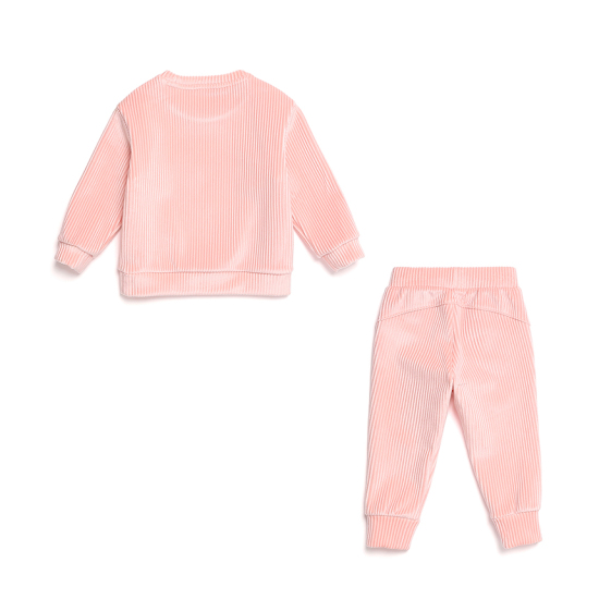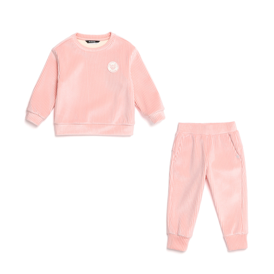 - 부드러운 벨로아 소재의 맨투맨 티셔츠와 귀여운 핏감의 조거팬츠를 매치하여