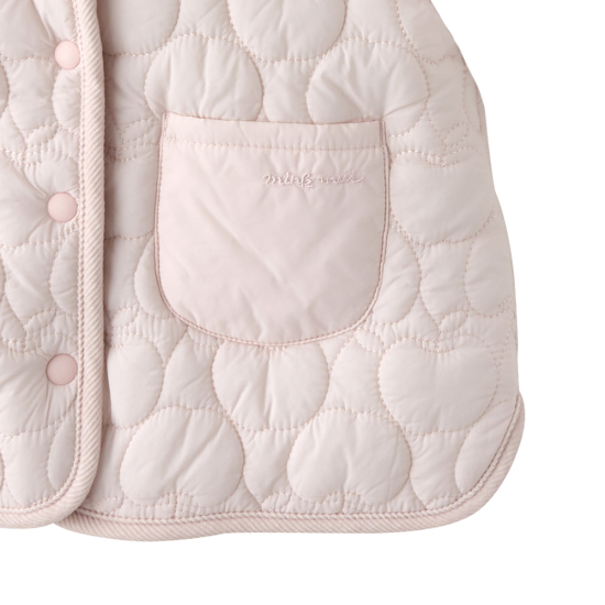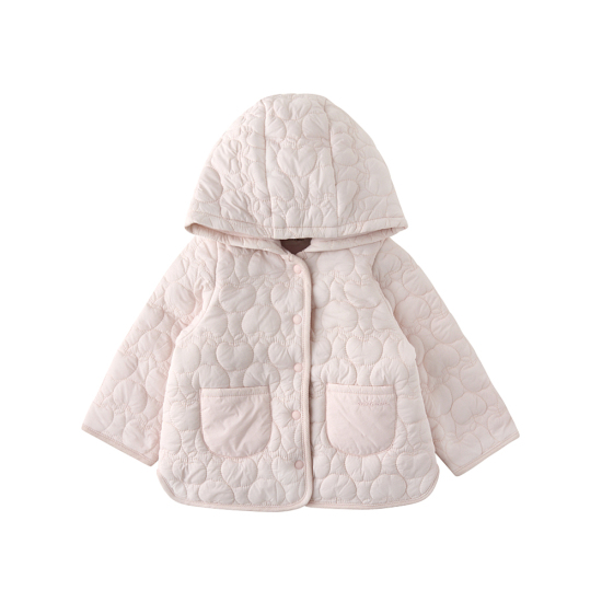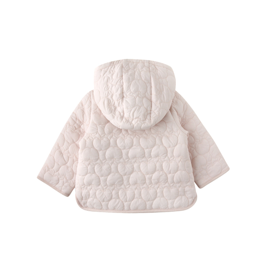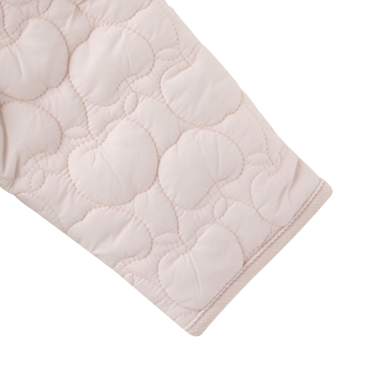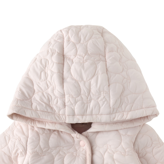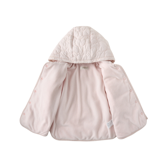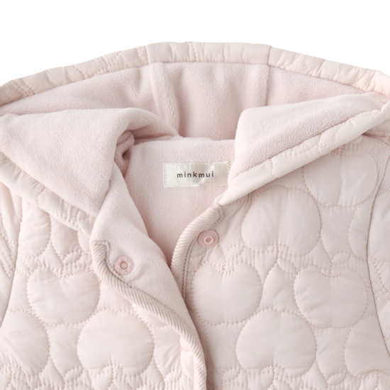 후드를 활용하여 보온성을 더해주었 으며, 귀여운 사과퀼팅으로 포인트를 주었습니다.