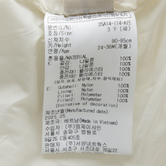 소 재.........겉감-나일론100% / 안감-나일론100% / 충전재1-폴리에스터100% / 충전재2-폴리에스터100%