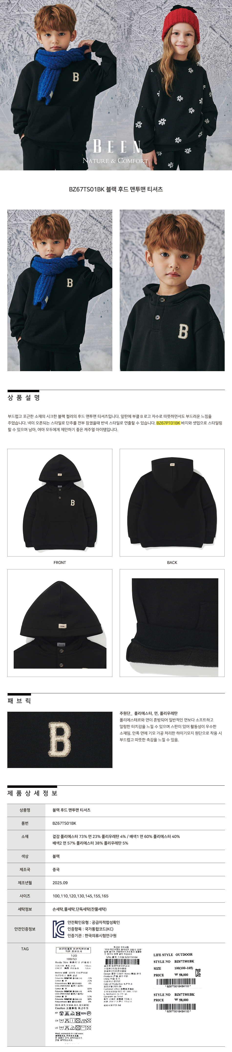 제품소재 : 겉감 폴리에스터 73% 면 23% 폴리우레탄 4% / 배색1 면 60% 폴리에스터 40% / 배색2 면 57% 폴리에스터 38% 폴리우레탄 5%