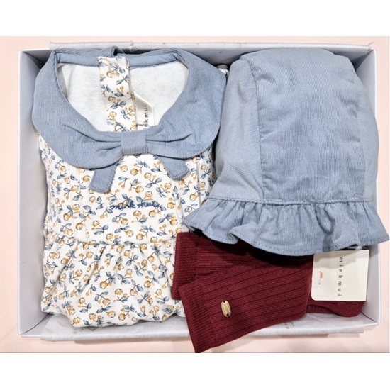 블루 코듀로이 리본카라와 보넷,양말이 세트 구성이 카라에 리본 디테일을 더하여 큐트하면서 귀여운 디자인의 아이템입니다.