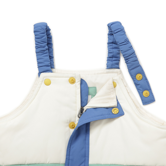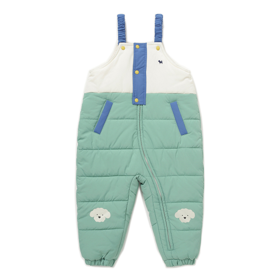 블루독베이비의 시그니처 스노우패딩오버롤입니다. 소프트한 터치감과 세련된 컬러감이 믹스된 팬츠입니다. 무릎에 도기나염이 포인트로 디자인되었으며, 생 활방수 처리가 되어 눈놀이에 적합하며 스노우 패딩 점퍼와 세트로 착장이 가능 한 팬츠입니다.