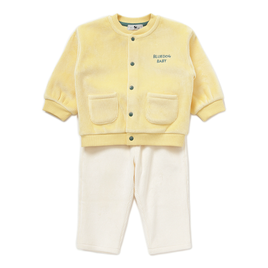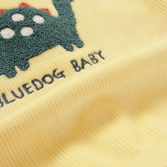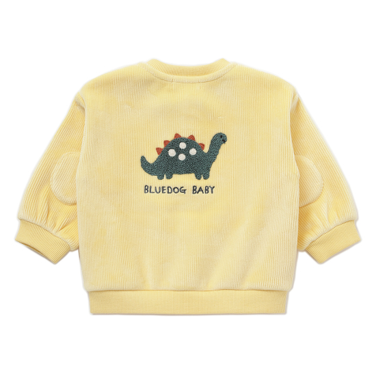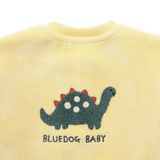 부드럽고 따뜻한 벨로아 소재로 제작된 상하세트 입니다. 뒷면에 귀여운 공룡 자수의 포인