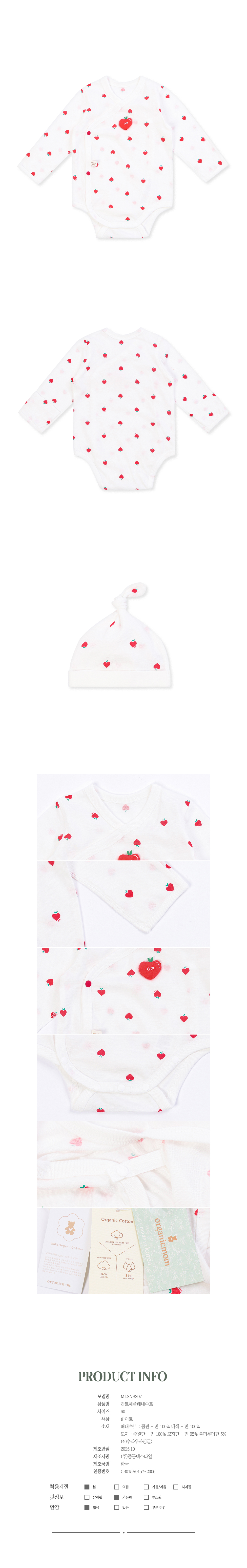 보리보리/오가닉맘 하트애플배내수트 MLSNBS07