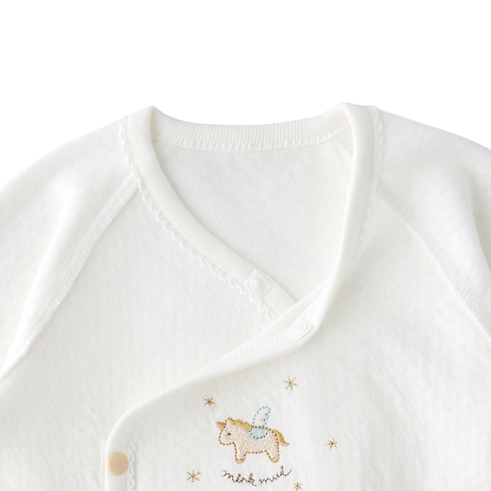 COZY COTTON 라인의 캡도트 스타일의 여밈이 간편한 프릴스타일의 배내저고리입니다.