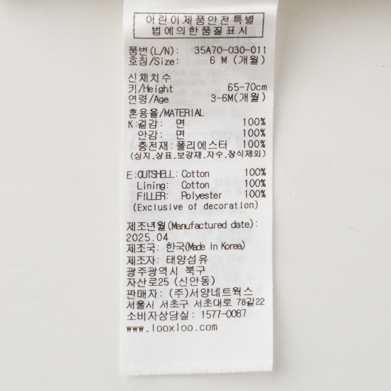 소 재...........겉감-면100% / 안감-면100% / 충전재-폴리에스터100%
