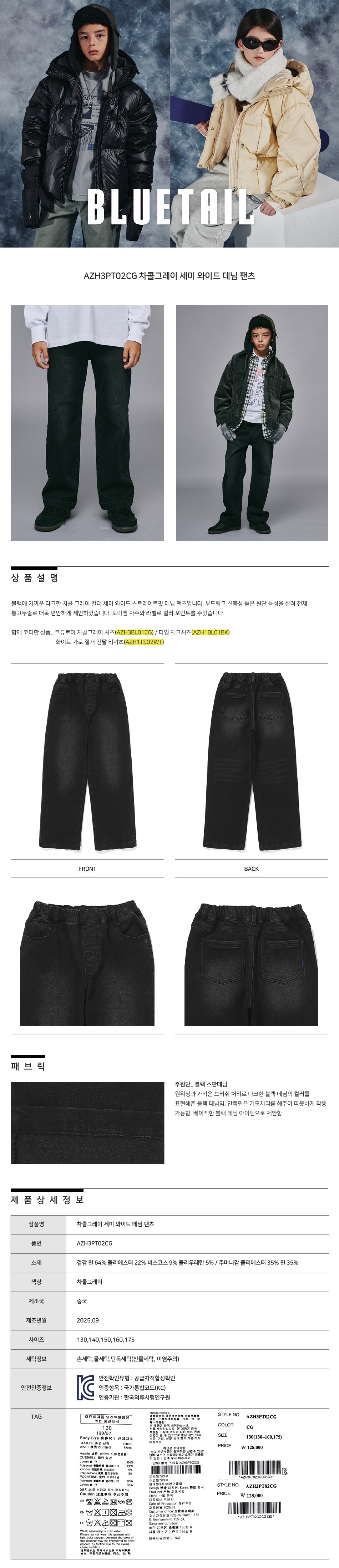 제품소재 : 겉감 면 64% 폴리에스터 22% 비스코스 9% 폴리우레탄 5% / 주머니감 폴리에스터 35% 면 35%