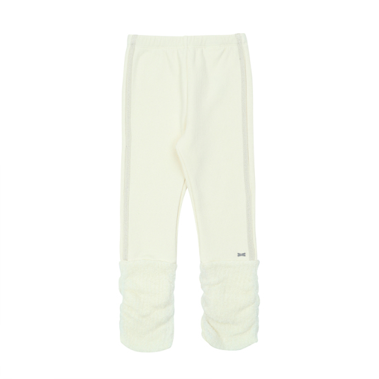상품설명-기모 골지 소재 다이마루 레깅스로 요즘 유행하는 루즈삭스를 레이어드 한 연출 한 스타일입니다. 옆 라인에 실버 헤링본 TAPE으로 포인트를 주었습니다.