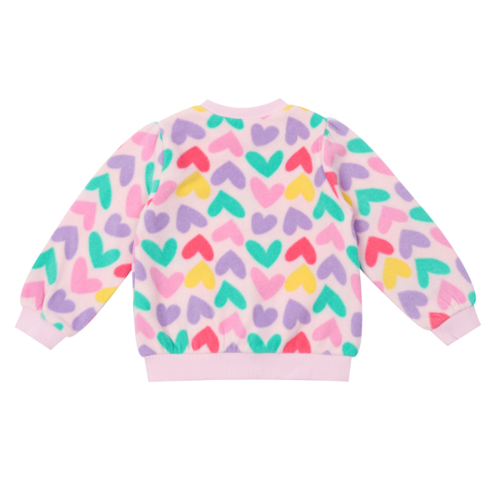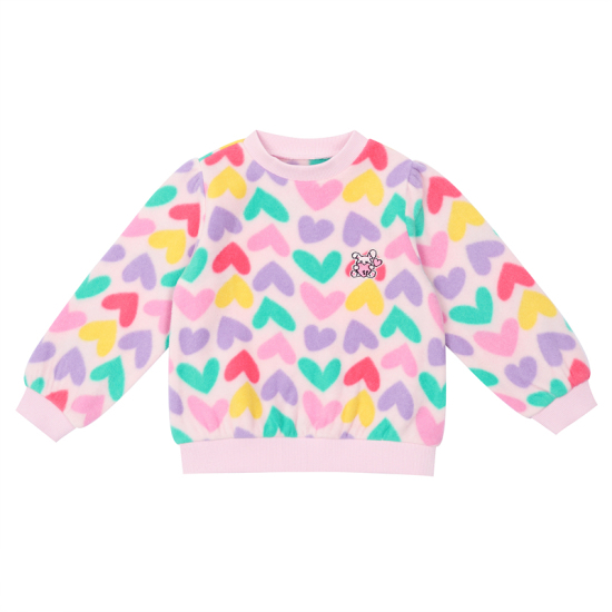 상세설명-전판에 컬러풀한 하트 나염이 발랄하면서도 귀여운 느낌을 주는 맨투맨입니다. 넥 소매 밑단에는 시보리 처리를 하여 활동성을 좋게 하였고,
