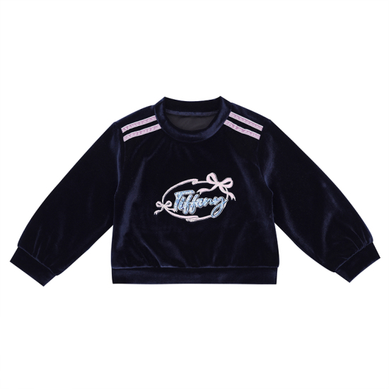 상품설명-본딩 벨벳 소재를 사용한 티셔츠로 어깨 라인에 벨벳 테잎 장식으로 포인트를 준 상하 SET 티셔입니다. 앞에 스팽글 리본 자수를 고급스럽게 하여 포인트를 살린 스타일입니다. SET 하의 ; T46KAP060