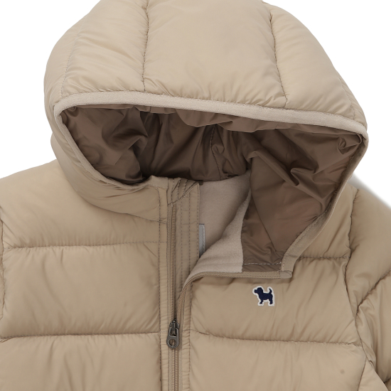 폴리 화섬 소재로 제작되어 가볍고 고급스러우며 구스 충전재와 플리스 안감이 적용되어 보온성이 뛰어납니다.